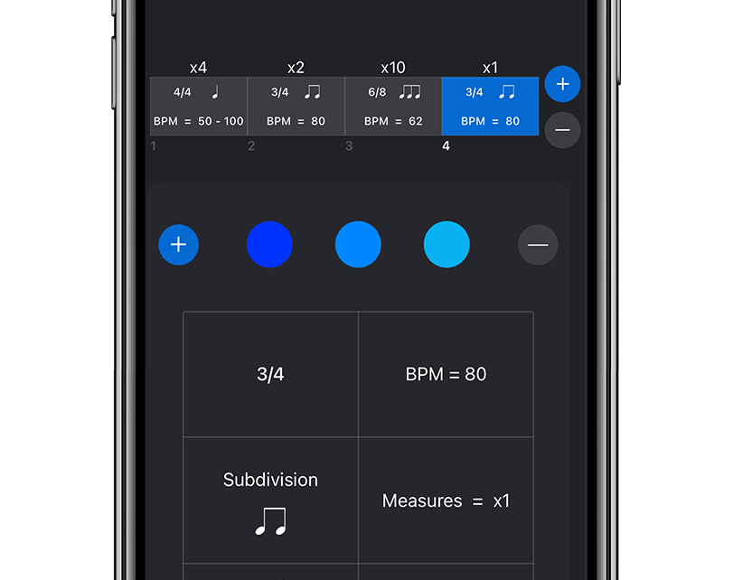 Musicians can easily set up their meter, tempo, and subdivision. The randomize button allows you to train your time. Try out the different clicks like clave, wooden, metal, three unique drum sets, and more.